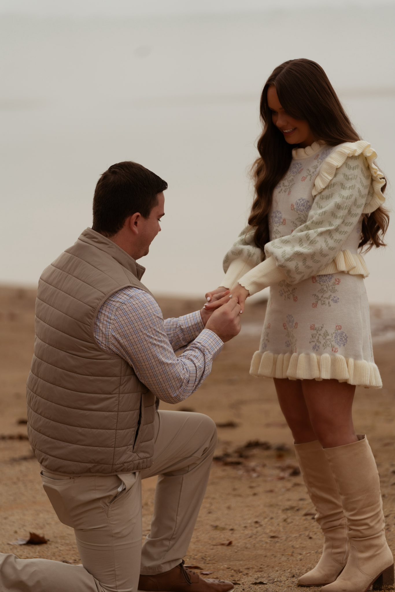 Parker proposed at a beautiful lake filled with memories from their first years together, making the moment even more personal and unforgettable. A perfectly planned proposal, a ring made with intention and love, and a setting rich with shared history.